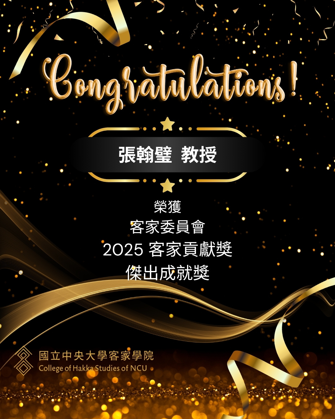 【恭賀】本院張翰璧教授榮獲客委會2025客家貢獻獎-傑出成就獎