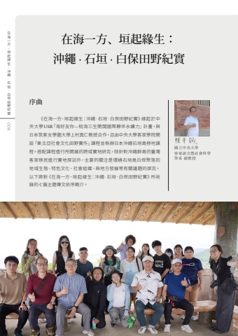 %u5e8f%u66f2%u300a%u5728%u6d77%u4e00%u65b9%u3001%u57a3%u8d77%u7de3%u751f%uff1a%u6c96%u7e69%u00b7%u77f3%u57a3%u00b7%u767d%u4fdd%u7530%u91ce%u7d00%u5be6%u300b%u7de3%u8d77%u65bc%u4e2d%u592e%u5927%u5b78USR%u300c%u6d77%u597d%u53cb%u4f60%u2014%u6843%u6d77%u4e09%u751f%u958b%u95ca%u570b%u969b%u5925%u4f34%u6c38%u7e8c%u529b%u300d%u8a08%u756b%uff0c%u8207%u65e5%u672c%u7b51%u7d2b%u5973%u5b78%u5712%u5927%u5b78%u4e0a%u6751%u771f%u4ec1%u6559%u6388%u5408%u4f5c%uff0c%u4e14%u7531%u4e2d%u592e%u5927%u5b78%u5ba2%u5bb6%u5b78%u9662%u958b%u8a2d%u300c%u6771%u5317%u4e9e%u793e%u6703%u6587%u5316%u7530%u91ce%u5be6%u4f5c%u300d%u8ab2%u7a0b%u4e26%u57f7%u8fa6%u65e5%u672c%u6c96%u7e69%u77f3%u57a3%u5cf6%u79fb%u5730%u8ab2%u7a0b%u3002%u642d%u914d%u8ab2%u7a0b%u9032%u884c%u6240%u958b%u5c55%u7684%u8de8%u57df%u5be6%u5730%u7814%u7a76%uff0c%u9664%u91dd%u5c0d%u6c96%u7e69%u7fa4%u5cf6%u7684%u81fa%u7063%u5ba2%u5bb6%u79fb%u6c11%u9032%u884c%u5be6%u5730%u63a2%u8a2a%u5916%uff0c%u4e3b%u8981%u7684%u95dc%u6ce8%u662f%u74b0%u7e5e%u77f3%u57a3%u5cf6%u767d%u4fdd%u805a%u843d%u7684%u5730%u57df%u751f%u614b%u3001%u7279%u8272%u6587%u5316%u3001%u793e%u6703%u7d44%u7e54%u3001%u8207%u5730%u65b9%u767c%u5c55%u7b49%u6709%u95dc%u8b70%u984c%u7684%u63a2%u7a76%u3002%u4ee5%u4e0b%u5c07%u5c0d%u300a%u5728%u6d77%u4e00%u65b9%u3001%u57a3%u8d77%u7de3%u751f%uff1a%u6c96%u7e69%u00b7%u77f3%u57a3%u00b7%u767d%u4fdd%u7530%u91ce%u7d00%u5be6%u300b%u6240%u6536%u9304%u7684%u4e03%u7bc7%u4e3b%u984c%u5c08%u6587%u4f9d%u5e8f%u6982%u4ecb%u3002%u570b%u7acb%u4e2d%u592e%u5927%u5b78%u5ba2%u5bb6%u8a9e%u6587%u66a8%u793e%u6703%u79d1%u5b78%u5b78%u7cfb %u526f%u6559%u6388008%u5728%u6d77%u4e00%u65b9%u3001%u57a3%u8d77%u7de3%u751f%uff1a%u6c96%u7e69%u00b7%u77f3%u57a3%u00b7%u767d%u4fdd%u7530%u91ce%u7d00%u5be6%u5728%ufa45%u4e00%u65b9%u3001%u57a3%u8d77%u7de3%u751f%uff1a%u6c96%u7e69 %u00b7 %u77f3%u57a3 %u00b7 %u767d%u4fdd%u7530%u91ce%u7d00%u5be6