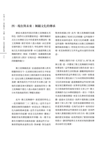 %u7e3d%u7d50%u672c%u8abf%u67e5%u6240%u63a2%u8a0e%u7684%u52e4%u738b%u6d41%u821e%u8e0a%u53ca%u5176%u7279%u8272%uff0c%u6211%u5011%u53ef%u4ee5%u6df1%u523b%u9ad4%u6703%u5230%u9019%u4e00%u7368%u7279%u821e%u8e0a%u5f62%u5f0f%u5728%u65e5%u672c%u50b3%u7d71%u6587%u5316%u4e2d%u7684%u91cd%u8981%u6027%u548c%u8c50%u5bcc%u6027%u3002%u52e4%u738b%u6d41%u821e%u8e0a%uff0c%u6e90%u65bc%u7409%u7403%u516b%u91cd%u5c71%u5730%u5340%uff0c%u7531%u6bd4%u5c4b%u6839%u5b89%u5f3c%u6240%u5275%u7acb%uff0c%u5176%u6b77%u53f2%u60a0%u4e45%uff0c%u7279%u8272%u9bae%u660e%uff0c%u5c0d%u65bc%u7576%u5730%u6587%u5316%u6709%u8457%u6df1%u9060%u7684%u5f71%u97ff%u3002%u672c%u6587%u901a%u904e%u5c0d%u52e4%u738b%u6d41%u821e%u8e0a%u7684%u6b77%u53f2%u3001%u767c%u5c55%u3001%u624b%u90e8%u52d5%u4f5c%u3001%u67d3%u7e54%u670d%u98fe%u53ca%u8e0a%u4e3b%u984c%u7684%u6df1%u5165%u63a2%u8a0e%uff0c%u5448%u73fe%u51fa%u9019%u4e00%u50b3%u7d71%u821e%u8e0a%u5f62%u5f0f%u7684%u7cbe%u9ad3%u8207%u9b45%u529b%u3002%u52e4%u738b%u6d41%u821e%u8e0a%u6d41%u6d3e%uff0c%u4e26%u901a%u904e%u4ed6%u7684%u50b3%u4eba%u5c07%u5176%u7cbe%u9ad3%u4fdd%u7559%u81f3%u4eca%u3002%u6bd4%u5c4b%u6839%u5b89%u5f3c%u81ea%u8eab%u7684%u751f%u5e73%u548c%u5bb6%u65cf%u80cc%u666f%u4f7f%u4ed6%u5728%u7409%u7403%u738b%u671d%u7684%u8e0a%u754c%u6709%u8457%u91cd%u8981%u5730%u4f4d%uff0c%u9019%u4e5f%u70ba%u52e4%u738b%u6d41%u821e%u8e0a%u7684%u767c%u5c55%u5960%u5b9a%u4e86%u5805%u5be6%u7684%u57fa%u790e%u3002%u96d6%u7136%u4ed6%u7684%u751f%u5e73%u4ecd%u6709%u8a31%u591a%u672a%u89e3%u4e4b%u8b0e%uff0c%u4f46%u4ed6%u7684%u8ca2%u737b%u662f%u7121%u53ef%u7f6e%u7591%u7684%u3002%u901a%u904e%u4ed6%u7684%u52aa%u529b%uff0c%u52e4%u738b%u6d41%u821e%u8e0a%u4e0d%u50c5%u5728%u516b%u91cd%u5c71%u5730%u5340%u751f%u6839%u767c%u82bd%uff0c%u9084%u5728%u65e5%u672c%u5176%u4ed6%u5730%u5340%u5f97%u5230%u4e86%u50b3%u64ad%u53ca%u767c%u5c55%u3002%u6b64%u5916%uff0c%u52e4%u738b%u6d41%u821e%u8e0a%u4e2d%uff0c%u6700%u91cd%u8981%u7684%u7279%u8272%u4e4b%u4e00%u662f%u5176%u7368%u7279%u7684%u300c%u4e8c%u5341%u4e8c%u7a2e%u624b%u6cd5%u300d%uff0c%u9019%u4e9b%u624b%u6cd5%u4e0d%u50c5%u50c5%u662f%u7c21%u55ae%u7684%u8e0a%u52d5%u4f5c%uff0c%u66f4%u662f%u5305%u542b%u4e86%u8c50%u5bcc%u7684%u6587%u5316%u5167%u6db5%u548c%u7cbe%u795e%u610f%u7fa9%u3002%u9019%u4e9b%u624b%u6cd5%u7684%u50b3%u627f%uff0c%u4e0d%u50c5%u50c5%u662f%u52d5%u4f5c%u7684%u5ef6%u7e8c%uff0c%u66f4%u662f%u6587%u5316%u7684%u50b3%u627f%uff0c%u9ad4%u73fe%u4e86%u821e%u8e0a%u80cc%u5f8c%u7684%u50f9%u503c%u89c0%u548c%u4e16%u754c%u89c0%u3002%u6bcf%u4e00%u7a2e%u624b%u6cd5%u90fd%u6709%u5176%u7368%u7279%u7684%u540d%u7a31%u548c%u610f%u7fa9%uff0c%u901a%u904e%u9019%u4e9b%u624b%u6cd5%uff0c%u821e%u8005%u5011%u80fd%u5920%u8868%u9054%u5c0d%u81ea%u7136%u3001%u5c0d%u795e%u9748%u3001%u5c0d%u5148%u7956%u7684%u656c%u754f%u548c%u611f%u8b1d%u4e4b%u60c5%u3002%u6b64%u5916%uff0c%u52e4%u738b%u6d41%u821e%u8e0a%u7684%u67d3%u7e54%u670d%u98fe%u4e5f%u9ad4%u73fe%u4e86%u7409%u7403%u6587%u5316%u7684%u7cbe%u9ad3%uff0c%u9019%u4e9b%u670d%u98fe%u4e0d%u50c5%u50c5%u662f%u8868%u6f14%u7684%u9053%u5177%uff0c%u66f4%u662f%u6587%u5316%u7684%u8f09%u9ad4%u3002%u901a%u904e%u9019%u4e9b%u670d%u98fe%uff0c%u821e%u8005%u5011%u80fd%u5920%u5c55%u793a%u51fa%u52e4%u738b%u6d41%u821e%u8e0a%u7684%u7368%u7279%u98a8%u683c%u548c%u9b45%u529b%u3002%u7279%u5225%u662f%u5176%u4e2d%u7684%u4e94%u56db%u65b9%u683c%u5716%u6a23%uff0c%u66f4%u662f%u8c61%u5fb5%u8457%u751f%u751f%u4e16%u4e16%u76f4%u5230%u6c38%u9060%u7684%u7f8e%u597d%u5bd3%u610f%u3002%u821e%u8e0a%u4e3b%u984c%u7684%u4ecb%u7d39%uff0c%u5c24%u5176%u662f%u300c%u5c71%u300d%u548c%u300c%u6d77%u300d%u5169%u500b%u4e3b%u984c%uff0c%u9032%u4e00%u6b65%u9ad4%u73fe%u4e86%u52e4%u738b%u6d41%u821e%u8e0a%u7684%u591a%u6a23%u6027%u548c%u8c50%u5bcc%u6027%u3002%u9019%u4e9b%u821e%u8e0a%u901a%u904e%u751f%u52d5%u7684%u8868%u6f14%uff0c%u5c55%u793a%u4e86%u8fb2%u696d%u548c%u6f01%u696d%u751f%u6d3b%u7684%u9ede%u6ef4%uff0c%u8b93%u89c0%u773e%u80fd%u5920%u66f4%u597d%u5730%u7406%u89e3%u548c%u6b23%u8cde%u9019%u4e9b%u50b3%u7d71%u6587%u5316%u3002%u540c%u6642%uff0c%u5ea7%u6577%u7ae5%u5b50%u7684%u6545%u4e8b%u4e3b%u984c%u4e5f%u5c55%u793a%u4e86%u65e5%u672c%u6c11%u9593%u6545%u4e8b%u548c%u50b3%u7d71%u6587%u5316%u7684%u6df1%u539a%u5e95%u860a%uff0c%u901a%u904e%u821e%u8e0a%u5c07%u9019%u4e9b%u6545%u4e8b%u751f%u52d5%u5730%u5448%u73fe%u5728%u89c0%u773e%u9762%u524d%u3002%u800c%u7b46%u8005%u4e5f%u5c07%u52e4%u738b%u6d41%u821e%u8e0a%u5728%u767d%u4fdd%u6d77%u795e%u796d%u7684%u5c55%u73fe%u5448%u73fe%u5728%u6587%u7ae0%u4e4b%u4e2d%uff0c%u52e4%u738b%u6d41%u821e%u8e0a%u4f5c%u70ba%u65e5%u672c%u50b3%u7d71%u85dd%u80fd%u7684%u4e00%u90e8%u5206%uff0c%u4e0d%u50c5%u5177%u6709%u9ad8%u5ea6%u7684%u85dd%u8853%u50f9%u503c%uff0c%u66f4%u662f%u6587%u5316%u50b3%u627f%u7684%u91cd%u8981%u8f09%u9ad4%u3002%u901a%u904e%u672c%u6587%u7684%u63a2%u8a0e%uff0c%u6211%u5011%u4e0d%u50c5%u5c0d%u52e4%u738b%u6d41%u821e%u8e0a%u6709%u4e86%u6df1%u5165%u7684%u4e86%u89e3%uff0c%u4e5f%u66f4%u52a0%u8a8d%u8b58%u5230%u50b3%u7d71%u6587%u5316%u7684%u91cd%u8981%u6027%u8207%u50f9%u503c%u3002%u5728%u73fe%u4ee3%u793e%u6703%u4e2d%uff0c%u5982%u4f55%u66f4%u597d%u5730%u4fdd%u8b77%u548c%u50b3%u627f%u9019%u4e9b%u5bf6%u8cb4%u7684%u6587%u5316%u907a%u7522%uff0c%u662f%u6211%u5011%u6bcf%u500b%u4eba%u90fd%u61c9%u8a72%u95dc%u6ce8%u548c%u52aa%u529b%u7684%u65b9%u5411%u3002%u52e4%u738b%u6d41%u821e%u8e0a%u7684%u6b77%u53f2%u548c%u767c%u5c55%uff0c%u7d66%u6211%u5011%u63d0%u4f9b%u4e86%u5bf6%u8cb4%u7684%u7d93%u9a57%u548c%u555f%u793a%uff0c%u8b93%u6211%u5011%u80fd%u5920%u5728%u672a%u4f86%u66f4%u597d%u5730%u4fdd%u8b77%u548c%u50b3%u627f%u81ea%u8eab%u7684%u6587%u5316%u7470%u5bf6%u3002%u56db%u3001%u73fe%u5728%u8207%u672a%u4f86%uff1a%u821e%u8e0a%u6587%u5316%u7684%u50b3%u627f102%u5728%u6d77%u4e00%u65b9%u3001%u57a3%u8d77%u7de3%u751f%uff1a%u6c96%u7e69%u00b7%u77f3%u57a3%u00b7%u767d%u4fdd%u7530%u91ce%u7d00%u5be6