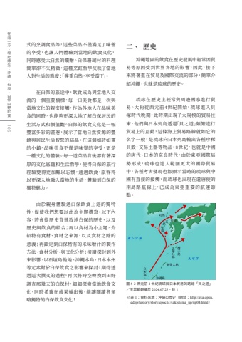 %u5716 5-2 %u897f%u5143%u524d 4 %u4e16%u7d00%u7409%u7403%u8207%u65e5%u672c%u8cbf%u6613%u7684%u8def%u7dda%u300c%u8c9d%u4e4b%u9053%u300d%uff0f%u738b%u82e1%u860d%u7ffb%u651d%u65bc 2024.07.25%uff0c%u8a3b 1%u5f0f%u7684%u70f9%u8abf%u98df%u54c1%u7b49%uff0c%u9019%u4e9b%u83dc%u54c1%u4e0d%u50c5%u6eff%u8db3%u4e86%u5473%u857e%u7684%u4eab%u53d7%uff0c%u4e5f%u8b93%u4eba%u5011%u9ad4%u9a57%u5230%u7576%u5730%u7684%u98f2%u98df%u6587%u5316%uff0c%u540c%u6642%u611f%u53d7%u5927%u81ea%u7136%u7684%u994b%u8d08%u3002%u767d%u4fdd%u73ca%u745a%u6751%u7684%u6599%u7406%u7c21%u55ae%u537b%u4e0d%u5931%u7cbe%u7dfb%uff0c%u9019%u7a2e%u70f9%u98ea%u54f2%u5b78%u53cd%u6620%u4e86%u7576%u5730%u4eba%u5c0d%u751f%u6d3b%u7684%u614b%u5ea6%uff1a%u300c%u5c0a%u91cd%u81ea%u7136%uff0c%u4eab%u53d7%u7576%u4e0b%u300d%u3002%u5728%u767d%u4fdd%u7684%u65c5%u9014%u4e2d%uff0c%u98f2%u98df%u6210%u70ba%u8207%u7576%u5730%u4eba%u4ea4%u6d41%u7684%u4e00%u500b%u91cd%u8981%u6a4b%u6a11%uff0c%u6bcf%u4e00%u53e3%u7f8e%u98df%u90fd%u662f%u4e00%u6b21%u8207%u7576%u5730%u6587%u5316%u7684%u89aa%u5bc6%u63a5%u89f8%uff0c%u4f5c%u70ba%u5916%u5730%u4eba%u5728%u54c1%u5473%u7f8e%u98df%u7684%u540c%u6642%uff0c%u4e5f%u80fd%u5920%u66f4%u6df1%u5165%u5730%u4e86%u89e3%u767d%u4fdd%u5c45%u6c11%u7684%u751f%u6d3b%u65b9%u5f0f%u548c%u50f9%u503c%u89c0%u3002%u767d%u4fdd%u7684%u98f2%u98df%u6587%u5316%u662f%u4e00%u5e45%u8c50%u5bcc%u591a%u5f69%u7684%u756b%u5377%uff0c%u5c55%u793a%u4e86%u7576%u5730%u81ea%u7136%u8cc7%u6e90%u7684%u8c50%u9952%u8207%u5c45%u6c11%u751f%u6d3b%u667a%u6167%u7684%u7d50%u6676%u3002%u5728%u9019%u500b%u5982%u8a69%u5982%u756b%u7684%u5c0f%u93ae%uff0c%u54c1%u5473%u7f8e%u98df%u4e0d%u50c5%u662f%u5473%u89ba%u7684%u4eab%u53d7%uff0c%u66f4%u662f%u4e00%u7a2e%u6587%u5316%u7684%u9ad4%u9a57%u3002%u6bcf%u4e00%u9053%u83dc%u54c1%u80cc%u5f8c%u90fd%u6709%u8457%u6df1%u539a%u7684%u6587%u5316%u5e95%u860a%u548c%u751f%u6d3b%u54f2%u5b78%uff0c%u4f7f%u5f97%u767d%u4fdd%u7684%u65c5%u884c%u7d93%u9a57%u8b8a%u5f97%u66f4%u52a0%u96e3%u4ee5%u5fd8%u61f7%uff0c%u901a%u904e%u98f2%u98df%uff0c%u65c5%u5ba2%u5f97%u4ee5%u66f4%u6df1%u5165%u5730%u878d%u5165%u7576%u5730%u7684%u751f%u6d3b%uff0c%u9ad4%u9a57%u5230%u767d%u4fdd%u7684%u7368%u7279%u9b45%u529b%u3002%u7531%u65bc%u89aa%u8eab%u9ad4%u9a57%u904e%u767d%u4fdd%u98f2%u98df%u4e0a%u8ff0%u7684%u7368%u7279%u6027%uff0c%u4fc3%u4f7f%u6211%u5011%u60f3%u8981%u4ee5%u6b64%u70ba%u4e3b%u984c%u64b0%u5beb%u3002%u4ee5%u4e0b%u5167%u5bb9%uff0c%u5c07%u6703%u5f9e%u6b77%u53f2%u80cc%u666f%u6558%u8ff0%u767d%u4fdd%u7684%u6b77%u53f2%u3001%u4ee5%u53ca%u6b77%u53f2%u8207%u98f2%u98df%u7684%u7d50%u5408%uff1b%u518d%u4ee5%u98df%u6750%u70ba%u5c0f%u4e3b%u984c%uff0c%u4ecb%u7d39%u7279%u6709%u98df%u6750%u3001%u98df%u6750%u4e4b%u4f86%u6e90%u3001%u4ee5%u53ca%u98df%u6750%u4e4b%u9918%u7684%u610f%u7fa9%uff1b%u518d%u9396%u5b9a%u5230%u767d%u4fdd%u7279%u6709%u7684%u7c73%u5473%u564c%u6c41%u7684%u88fd%u4f5c%u65b9%u6cd5%u3001%u98df%u6750%u5206%u6790%u3001%u8207%u6587%u5316%u5206%u6790%uff1b%u63a5%u7e8c%u63a2%u8a0e%u5230%u5916%u4f86%u5f71%u97ff%uff0c%u4ee5%u77f3%u57a3%u5cf6%u4ed6%u5730%u3001%u6c96%u7e69%u672c%u5cf6%u3001%u65e5%u672c%u672c%u5dde%u7b49%u5143%u7d20%u5c0d%u65bc%u767d%u4fdd%u98f2%u98df%u4e4b%u5f71%u97ff%u4f86%u63a2%u8a0e%u3002%u671f%u5f85%u900f%u904e%u9019%u6b21%u64b0%u6587%u7684%u904e%u7a0b%uff0c%u518d%u6b21%u5c07%u6642%u7a7a%u8f49%u63db%u5230%u7530%u91ce%u8abf%u67e5%u90a3%u5e7e%u5929%u7684%u767d%u4fdd%u6751%uff0c%u7d30%u7d30%u63a2%u7d22%u7576%u5730%u98f2%u98df%u6587%u5316%uff0c%u540c%u6642%u5e0c%u5180%u5728%u6210%u679c%u8f38%u51fa%u5f8c%uff0c%u80fd%u8b93%u95b1%u8b80%u8005%u9818%u7565%u7368%u7279%u7684%u767d%u4fdd%u98f2%u98df%u6587%u5316%uff01%u6c96%u7e69%u5730%u5340%u7684%u98f2%u98df%u5728%u6b77%u53f2%u767c%u5c55%u4e2d%u7d93%u5e38%u56e0%u8cbf%u6613%u7b49%u539f%u56e0%u53d7%u5230%u4e16%u754c%u5404%u5730%u7684%u5f71%u97ff%uff0c%u56e0%u6b64%uff0c%u63a5%u4e0b%u4f86%u5c07%u8457%u91cd%u5728%u8cbf%u6613%u53ca%u570b%u969b%u4ea4%u6d41%u7684%u90e8%u5206%uff0c%u7c21%u55ae%u4ecb%u7d39%u6c96%u7e69%uff0c%u4e5f%u5c31%u662f%u7409%u7403%u7684%u6b77%u53f2%u3002%u7409%u7403%u5728%u6b77%u53f2%u4e0a%u7d93%u5e38%u8207%u5468%u908a%u570b%u5bb6%u9032%u884c%u8cbf%u6613%u3002%u5927%u7d04%u5f9e%u897f%u5143%u524d4%u4e16%u7d00%u958b%u59cb%uff0c%u7409%u7403%u9032%u5165%u8c9d%u585a%u6642%u4ee3%u665a%u671f%uff0c%u6b64%u6642%u671f%u51fa%u73fe%u4e86%u5927%u898f%u6a21%u7684%u8cbf%u6613%u5f80%u4f86%uff0c%u4ed6%u5011%u8207%u65e5%u672c%u5217%u5cf6%u900f%u904e%u300c%u8c9d%u4e4b%u9053%u300d%u983b%u7e41%u9032%u884c%u8cbf%u6613%u4e0a%u7684%u4e92%u52d5%uff0c%u9019%u689d%u6d77%u4e0a%u8cbf%u6613%u8def%u7dda%u5c31%u5982%u5b83%u7684%u540d%u5b57%u4e00%u822c%uff0c%u662f%u7409%u7403%u5411%u65e5%u672c%u5217%u5cf6%u8f38%u51fa%u5404%u7a2e%u73cd%u7a00%u8c9d%u6bbc%uff0c%u4ea4%u6613%u571f%u5668%u7b49%u7269%u54c1%u30028%u4e16%u7d00%uff0c%u4e5f%u5c31%u662f%u4e2d%u570b%u7684%u5510%u4ee3%u3001%u65e5%u672c%u7684%u5948%u826f%u6642%u4ee3%uff0c%u7531%u65bc%u6771%u4e9e%u570b%u969b%u5c40%u52e2 %u5f62%u6210%uff0c%u7409 %u7403%u4e5f %u9032%u5165%u7bc4%u570d%u66f4%u5927%u7684%u570b%u969b%u8cbf%u6613%u4e2d%uff0c%u5404%u7a2e%u8003%u53e4%u767c%u73fe%u4e5f%u90fd%u986f%u793a%u7576%u6642%u7684%u7409%u7403%u8207%u4e2d%u570b%u6709%u76f4%u63a5%u7684%u63a5%u89f8%uff0c%u800c%u7409%u7403%u4e5f%u51fa%u73fe%u5728%u9063%u5510%u4f7f%u7684%u5357%u5cf6%u8def %u822a %u7dda%u4e0a%uff0c%u5df2%u6210%u70ba%u6771%u4e9e%u91cd%u8981%u7684%u822a%u904b%u7bc0%u9ede%u3002%u4e8c%u3001%u0009 %u6b77%u53f2%u8a3b 1%uff1a%u8cc7%u6599%u4f86%u6e90%uff1a%u6c96%u7e04%u306e%u6b74%u53f2%uff08%u7db2%u5740%uff1ahttp://rca.open.ed.jp/history/story/epoch1/sakishima_up/up04.html%uff09106%u5728%u6d77%u4e00%u65b9%u3001%u57a3%u8d77%u7de3%u751f%uff1a%u6c96%u7e69%u00b7%u77f3%u57a3%u00b7%u767d%u4fdd%u7530%u91ce%u7d00%u5be6