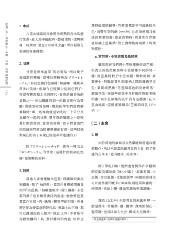 1. %u6728%u74dc%u516b%u91cd%u5c71%u5730%u5340%u5c45%u6c11%u6703%u5c07%u672a%u6210%u719f%u7684%u9752%u6728%u74dc%u9032%u884c%u70f9%u716e%u3001%u653e%u5165%u6e6f%u4e2d%u505a%u914d%u6599%u3001%u88fd%u6210%u6f2c%u7269%uff0c%u6216%u8207%u523a%u8eab%u4e00%u540c%u98df%u7528%uff0c%u8396%u4e5f%u53ef%u4ee5%u7528%u4f86%u70f9%u98ea%uff0c%u6240%u4ee5%u7d93%u5e38%u5728%u5bb6%u5712%u7684%u5404%u8655%u7a2e%u690d%u30022. %u7518%u8517%u7518%u8517%u662f%u4f9b%u5949%u76c6%u796d1%u7684%u5fc5%u9700%u54c1%uff0c%u6240%u4ee5%u5e7e%u4e4e%u6bcf%u5bb6%u90fd%u6709%u7a2e%u690d%u3002%u9019%u7a2e%u7518%u8517%u88ab%u7a31%u70ba%u300c%u30af%u30ef%u30fc%u30b7%u30b7%u30c3%u30c1%u30e3%u300d%uff0c%u6709%u7d05%u8272%u548c%u767d%u8272%u5169%u7a2e%uff0c%u7121%u8ad6%u54ea%u4e00%u7a2e%u90fd%u975e%u5e38%u591a%u6c41%u7f8e%u5473%uff0c%u4f46%u5982%u4eca%u5df2%u7d93%u5f88%u5c11%u898b%u5230%u5b83%u5011%u4e86%u3002%u5728%u6c92%u6709%u7cd6%u679c%u548c%u6c34%u679c%u7684%u6642%u4ee3%uff0c%u7518%u8517%u662f%u6700%u7f8e%u5473%u7684%u98df%u7269%u4e4b%u4e00%uff0c%u6240%u4ee5%u5076%u723e%u5f97%u5230%u4e00%u5169%u622a%u7518%u8517%u4f5c%u70ba%u734e%u52f5%uff0c%u6703%u611f%u5230%u975e%u5e38%u9ad8%u8208%u3002%u6230%u524d%u7684%u5b78%u751f%u5011%u5f9e%u90a3%u9738%u4e58%u8239%u6642%uff0c%u552f%u4e00%u7684%u96f6%u98df%u5c31%u662f%u5207%u6210%u7d04%u4e09%u5341%u516c%u5206%u9577%u4e26%u7d91%u5728%u4e00%u8d77%u7684%u7518%u8517%uff1b%u8c50%u5e74%u796d%u7684%u6a02%u8da3%u4e4b%u4e00%u662f%u54ac%u8457%u7518%u8517%u770b%u62d4%u6cb3%uff1b%u76c6%u796d%u7684%u591c%u665a%uff0c%u5b69%u5b50%u5011%u6703%u51fa%u9580%u62fe%u53d6%u6bcf%u5bb6%u9580%u524d%u70ba%u7cbe%u9748%u6e96%u5099%u7684%u7518%u8517%u3002%u9019%u4e9b%u56de%u61b6%u5c0d%u73fe%u5728%u7684%u5b69%u5b50%u4f86%u8aaa%u5df2%u7d93%u662f%u975e%u5e38%u9059%u9060%u7684%u4e86%u3002%u9664%u4e86%u30af%u30ef%u30fc%u30b7%u30b7%u30c3%u30c1%u30e3%u5916%uff0c%u9084%u6709%u4e00%u7a2e%u540d%u70ba%u300c%u30e6%u30b7%u30ad%u30b7%u30c3%u30c1%u30e3%u300d%u7684%u7518%u8517%u3002%u9019%u7a2e%u7518%u8517%u8f03%u7d30%u4e14%u5805%u786c%uff0c%u662f%u88fd%u7cd6%u7684%u539f%u6599%u30023. %u82ad%u8549%u7576%u5730%u4eba%u5bb6%u6703%u7a2e%u690d%u7cf8%u82ad%u8549%uff0c%u5c07%u7e96%u7dad%u53d6%u51fa%u7528%u4f86%u7e54%u5e03%u3002%u9664%u4e86%u300c%u7cf8%u82ad%u8549%u300d%uff0c%u7576%u7136%u4e5f%u6703%u7a2e%u690d%u7528%u4f86%u98df%u7528%u7684%u300c%u5b9f%u82ad%u8549%u300d%uff0c%u4f46%u6578%u91cf%u8f03%u5c11%u3002%u9664%u4e86%u7e96%u7dad%uff0c%u7cf8%u82ad%u8549%u7684%u8449%u5b50%u4e5f%u6709%u76f8%u7576%u5ee3%u6cdb%u7684%u7528%u9014%u3002%u4ed6%u6703%u5c07%u82ad%u8549%u8449%u7576%u4f5c%u8c46%u8150%u3001%u8089%u3001%u5473%u564c%u3001%u9e7d%u7b49%u7b49%u7684%u5305%u88dd%uff0c%u4e5f%u6703%u5c07%u5b83%u4f5c%u70ba%u4fbf%u7576%u76d2%u7684%u66ff%u4ee3%u54c1%uff0c%u7121%u8ad6%u4e0a%u5c71%u4e0b%u6d77%uff0c%u90fd%u53ef%u4ee5%u8b93%u9060%u51fa%u7684%u4eba%u4f7f%u7528%u3002%u9664%u6b64%u4e4b%u5916%uff0c%u4e0d%u7ba1%u662f%u4f5c%u70ba%u634f%u98ef%u7cf0%u7684%u5de5%u5177%u3001%u716e%u7518%u85f7%u6642%u7684%u5167%u84cb%u3001%u57f9%u80b2%u8c46%u82bd%u6642%u5e95%u90e8%u7684%u92ea%u588a%uff0c%u82ad%u8549%u8449%u90fd%u662f%u4e0d%u53ef%u6216%u7f3a%u7684%u89d2%u8272%uff0c%u800c%u8c50%u5e74%u796d%u7684%u9905%uff08mochi%uff09%u4e5f%u5fc5%u9808%u4f7f%u7528%u6708%u6843%u6216%u82ad%u8549%u8449%u5305%u88f9%uff0c%u76db%u653e%u98df%u7269%u6642%uff0c%u4e5f%u6703%u5148%u5728%u5bb9%u5668%u5e95%u90e8%u92ea%u4e0a%u82ad%u8549%u8449%uff0c%u653e%u4e0a%u98df%u7269%u5f8c%u518d%u7528%u8449%u5b50%u5c07%u98df%u7269%u84cb%u4f4f%u3002a. %u5b9f%u82ad%u8549%u3001%u5c0f%u7b20%u539f%u7a2e%u53ca%u5cf6%u82ad%u8549%u96d6%u7136%u73fe%u5728%u6211%u5011%u5c07%u5c0f%u7b20%u539f%u7a2e%u7a31%u4f5c%u5cf6%u82ad%u8549%uff0c%u4f46%u771f%u6b63%u7684%u5cf6%u82ad%u8549%u662f%u8207%u5c0f%u7b20%u539f%u7a2e%u4e0d%u540c%u7684%u53e6%u4e00%u7a2e%u3002%u5cf6%u82ad%u8549%u5c07%u8f03%u65bc%u5c0f%u7b20%u539f%u7a2e%uff0c%u6a39%u5e79%u66f4%u7d30%uff0c%u679c%u5be6%u66f4%u5c0f%uff0c%u7279%u9ede%u662f%u8449%u7247%u548c%u8449%u67c4%u4e4b%u9593%u7684%u908a%u7de3%u5448%u9752%u8272%u3002%u679c%u5be6%u6210%u719f%u5f8c%uff0c%u82b1%u82de%u6697%u7d05%u8272%u7684%u76ae%u6703%u525d%u843d%uff0c%u9732%u51fa%u82b1%u6735%u3002%u5728%u9019%u4e9b%u82b1%u6735%u4e2d%u542b%u6709%u50cf%u73cd%u73e0%u822c%u7f8e%u5473%u7684%u871c%uff0c%u800c%u5c0f%u7b20%u539f%u7a2e%u7684%u82b1%u4e2d%u6c92%u6709%u9019%u7a2e%u871c%u3002%u5728%u516b%u91cd%u5c71%u5730%u5340%uff0c%u9019%u7a2e%u871c%u88ab%u7a31%u70ba%u300c%u82ad%u8549%u7684%u6bcd%u4e73%uff08%u30b8%u30c3%u30c1%uff09%u300d%u3002( %u4e8c ) %u4e3b%u98df1. %u7c73%u7531%u65bc%u7576%u5730%u7684%u6c23%u5019%u53ca%u81ea%u7136%u74b0%u5883%u76f8%u7576%u9069%u5408%u7a2e%u690d%u7a3b%u4f5c%uff0c%u6240%u4ee5%u7c73%u662f%u7576%u5730%u6700%u5e38%u898b%u7684%u4e3b%u98df%uff0c%u9664%u4e86%u666e%u901a%u7684%u5728%u4f86%u7c73%uff0c%u4e5f%u6709%u7cef%u7c73%u3001%u9ed1%u7c73%u7b49%u3002%u9664%u4e86%u55ae%u5403%u767d%u98ef%uff0c%u4ed6%u5011%u4e5f%u6703%u88fd%u4f5c%u8a31%u591a%u7a2e%u985e%u7684%u6df7%u98ef%u53ca%u98a8%u5473%u98ef%uff08%u5473%u3064%u3051%u98ef%uff09%uff0c%u6df7%u98ef%u6709%u5982%uff1a%u5c0f%u8c46%u98ef%u3001%u9752%u8c46%u6df7%u98ef%u3001%u7518%u85f7%u6df7%u98ef%u7b49%uff0c%u540c%u6a23%u7684%u98df%u6750%u4e5f%u53ef%u4ee5%u7528%u4f5c%u7ca5%u7684%u914d%u6599%uff1b%u98a8%u5473%u98ef%u5247%u7d93%u5e38%u8207%u8c6c%u8089%u4e00%u540c%u70f9%u716e%uff0c%u518d%u52a0%u4e0a%u9e7d%u3001%u91ac%u6cb9%u7b49%u8abf%u5473%u6599%u4f86%u8abf%u5473%u3002%u96dc%u708a%uff08%u304a%u3058%u3084%uff09%u4e5f%u662f%u5e38%u898b%u7684%u7c73%u98ef%u6599%u7406%uff0c%u4e00%u822c%u662f%u5c07%u7c73%u3001%u7518%u85f7%u8449%u3001%u9e7d%u3001%u91ac%u6cb9%u3001%u98df%u7528%u6cb9%u52a0%u5728%u4e00%u8d77%u70f9%u8abf%uff0c%u4e5f%u53ef%u4ee5%u52a0%u5165%u5927%u8c46%uff0c%u505a%u6210%u5927%u8c46%u96dc%u708a%u30021 %u5373%u76c2%u862d%u76c6%u7bc0%uff0c%u662f%u796d%u62dc%u7956%u9748%u7684%u7bc0%u65e5%u3002114%u5728%u6d77%u4e00%u65b9%u3001%u57a3%u8d77%u7de3%u751f%uff1a%u6c96%u7e69%u00b7%u77f3%u57a3%u00b7%u767d%u4fdd%u7530%u91ce%u7d00%u5be6