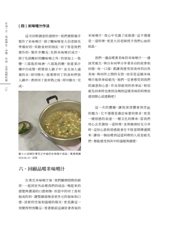 %u5716 5-13 %u7d00%u9304%u65bc%u590f%u82b1%u4e4b%u4e2d%u5ead%u7684%u7c73%u5473%u564c%u6c41%u6210%u54c1%uff0f%u9ec3%u7b71%u68cb%u651d2024.06.10%uff0c%u767d%u4fdd( %u56db ) %u7c73%u5473%u564c%u6c41%u4f5c%u6cd5%u9019%u6b21%u7530%u91ce%u8abf%u67e5%u7684%u904e%u7a0b%u4e2d%uff0c%u6211%u5011%u5be6%u969b%u89aa%u624b%u88fd%u4f5c%u4e86%u7c73%u5473%u564c%u6c41%uff0c%u9664%u4e86%u91c0%u5473%u564c%u662f%u5927%u6cca%u8001%u5e2b%u5148%u6e96%u5099%u597d%u7684%uff0c%u5176%u9918%u98df%u6750%u7684%u524a%u76ae%u3001%u5207%u4e01%u7686%u662f%u6211%u5011%u5be6%u4f5c%u7684%u3002%u88fd%u4f5c%u6b65%u9a5f%u70ba%uff1a%u5148%u5c07%u7c73%u5473%u564c%u6253%u6210%u6c41%uff0c%u9664%u4e86%u5148%u524d%u9183%u597d%u7684%u91c0%u5473%u564c%u4e4b%u5916%uff0c%u4ecd%u9808%u52a0%u4e0a%u4e00%u5319%u9e7d%uff0c%u4e09%u6e6f%u5319%u7684%u5473%u6dcb%uff0c%u516d%u6e6f%u5319%u7684%u7cd6%uff0c%u653e%u9032%u679c%u6c41%u6a5f%u4e2d%u6253%u6210%u6f3f%u3002%u5c07%u6f3f%u653e%u5165%u934b%u5b50%u4e2d%uff0c%u4e26%u4e14%u52a0%u5165%u9069%u91cf%u7684%u6c34%uff0c%u5373%u53ef%u958b%u706b%u3002%u63a5%u8457%u5c07%u5207%u4e01%u7684%u98df%u6750%u5011%u653e%u5165%u934b%u4e2d%u3002%u716e%u5230%u5207%u4e01%u98df%u6750%u719f%u4e4b%u5f8c%uff0c%u5373%u53ef%u95dc%u706b%uff0c%u5b8c%u6210%u3002%u516d%u3001%u56de%u9867%u54c1%u5690%u7c73%u5473%u564c%u6c41%u5728%u716e%u5b8c%u7c73%u5473%u564c%u6c41%u5f8c%uff0c%u6211%u5011%u96e2%u958b%u60b6%u71b1%u7684%u5eda%u623f%uff0c%u4e00%u8d77%u5230%u5ba4%u5916%u54c1%u5690%u6211%u5011%u7684%u6210%u54c1%u3002%u559d%u8d77%u4f86%u7684%u611f%u89ba%u8207%u6fc3%u6e6f%u7684%u53e3%u611f%u76f8%u50cf%uff0c%u4f46%u7576%u4e2d%u7684%u5207%u4e01%u98df%u6750%u7d44%u6210%u7684%u6599%uff0c%u8b93%u6574%u934b%u6e6f%u589e%u6dfb%u66f4%u591a%u5143%u7684%u6c23%u5473%u548c%u53e3%u611f%u3002%u6e05%u65b0%u7684%u7a7a%u6c23%u548c%u6eab%u6696%u7684%u967d%u5149%uff0c%u66f4%u662f%u8b93%u9019%u4e00%u523b%u8b8a%u5f97%u7279%u5225%u96e3%u5fd8%u3002%u770b%u8457%u773c%u524d%u9019%u934b%u5192%u8457%u9999%u6c23%u7684%u7c73%u5473%u564c%u6c41%uff0c%u6211%u5fc3%u4e2d%u5145%u6eff%u4e86%u6210%u5c31%u611f%uff0c%u9019%u4e0d%u50c5%u50c5%u662f%u4e00%u9053%u6599%u7406%uff0c%u66f4%u662f%u5927%u6cca%u8001%u5e2b%u6388%u4e88%u6211%u5011%u5fc3%u8840%u7684%u7d50%u6676%u3002%u6211%u5011%u4e00%u908a%u54c1%u5690%u8457%u7f8e%u5473%u7684%u7c73%u5473%u564c%u6c41%uff0c%u4e00%u908a%u8ac7%u7b11%u98a8%u751f%uff0c%u8207%u65e5%u672c%u540c%u5b78%u5206%u4eab%u8457%u5404%u81ea%u7684%u6545%u4e8b%u548c%u56de%u61b6%u3002%u6bcf%u4e00%u53e3%u6e6f%uff0c%u90fd%u8b93%u6211%u611f%u53d7%u5230%u98df%u6750%u7684%u81ea%u7136%u7f8e%u5473%uff0c%u8207%u540c%u4f34%u4e4b%u9593%u7684%u53cb%u60c5%u3002%u800c%u82e5%u662f%u9019%u934b%u7c73%u5473%u564c%u6c41%u80fd%u4f9b%u5949%u7d66%u7956%u5148%uff0c%u4ed6%u5011%u4e00%u5b9a%u6703%u611f%u53d7%u5230%u6211%u5011%u7684%u8aa0%u610f%u548c%u5fc3%u610f%u3002%u4f5c%u70ba%u796d%u7956%u7528%u7684%u4f9b%u5949%u54c1%uff0c%u76f8%u4fe1%u7956%u5148%u56de%u4f86%u6642%u4e5f%u6703%u56e0%u70ba%u559d%u5230%u9019%u6a23%u7f8e%u5473%u7684%u6599%u7406%u800c%u611f%u5230%u958b%u5fc3%u6216%u611f%u52d5%u5427%uff01%u9019%u4e00%u6b21%u7684%u9ad4 %u9a57%uff0c%u8b93 %u6211%u6df1%u6df1%u9ad4%u6703%u5230%u70f9%u98ea%u7684%u9b45%u529b%u3002%u5b83%u4e0d%u50c5%u50c5%u662f%u6eff%u8db3%u5473%u857e%u7684%u9700%u6c42%uff0c%u66f4%u662f%u4e00%u7a2e%u60c5%u611f%u7684%u8868%u9054%uff0c%u4e00%u7a2e%u6587%u5316%u7684%u50b3%u627f%u3002%u7576%u6211%u5011%u7528%u5fc3%u53bb%u70f9%u8abf%u6bcf%u4e00%u9053%u6599%u7406%uff0c%u4e26%u8207%u89aa%u670b%u597d%u53cb%u5206%u4eab%u6642%uff0c%u9019%u4efd%u5fc3%u610f%u548c%u60c5%u611f%u5c31%u6703%u5728%u4e0d%u7d93%u610f%u9593%u50b3%u905e%u958b%u4f86%uff0c%u8b93%u6bcf%u4e00%u500b%u54c1%u5690%u5230%u9019%u9053%u6599%u7406%u7684%u4eba%u6216%u662f%u7956%u5148%u5011%uff0c%u90fd%u80fd%u611f%u53d7%u5230%u5176%u4e2d%u7684%u6eab%u6696%u8207%u95dc%u611b%u3002124%u5728%u6d77%u4e00%u65b9%u3001%u57a3%u8d77%u7de3%u751f%uff1a%u6c96%u7e69%u00b7%u77f3%u57a3%u00b7%u767d%u4fdd%u7530%u91ce%u7d00%u5be6