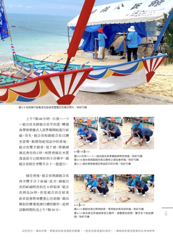 %u5716 6-8 %u5b8c%u6210%u7e5e%u884c%u8239%u96bb%u4e26%u5728%u8239%u8eab%u653e%u7f6e%u9e7d%u5df4%u7684%u5100%u5f0f%u7167%u7247%uff0f%u5f90%u5f69%u52fb%u651d%u4e0a%u53487%u9ede48%u5206 %u6642%uff0c%u767d%u4fdd%u30cf%u30fc%u30ea%u30fc%u7d44%u5408%u9577%u53ca%u526f%u7d44%u5408%u9577%u5e73%u7530%u900f%uff0c%u8f49%u904e%u8eab%u5e36%u9818%u773e%u5100%u5f0f%u4eba%u54e1%u6e96%u5099%u958b%u59cb%u9032%u884c%u7948%u798f%u3002%u9996%u5148%uff0c%u7d44%u5408%u9577%u548c%u526f%u7d44%u5408%u9577%u4ee5%u8e72%u5750%u59ff%u52e2%uff0c%u9ede%u71c3%u796d%u7940%u7528%u54c1%u4e2d%u7684%u9999%u5f8c%uff0c%u7d44%u5408%u9577%u96d9%u624b%u63e1%u9999%uff0c%u4f4e%u4e0b%u982d%uff0c%u5c07%u984d%u982d%u6e4a%u8fd1%u9999%u70b7%u7d042 %u79d2%uff0c%u518d%u5c07%u9999%u63d2%u5728%u6728%u8cea%u6dfa%u76d2%u524d%u65b9%u5df2%u7d93%u5806%u597d%u7684%u5c0f%u6c99%u63a8%u4e2d%uff0c%u526f%u7d44%u5408%u9577%u5247%u5728%u65c1%u96d9%u624b%u5408%u5341%u4e00%u8d77%u9032%u884c%u3002%u63d2%u5b8c%u9999%u5f8c%uff0c%u7d44%u5408%u9577%u8207%u526f%u7d44%u5408%u9577%u518d%u6b21%u96d9%u624b%u5408%u5341%u7948%u798f%uff0c%u6b64%u6b21%uff0c%u526f%u7d44%u5408%u9577%u7684%u7948%u798f%u6642%u9577%u7d04%u572811%u79d2%u7d50%u675f%uff0c%u7d44%u5408%u9577%u5247%u70ba26%u79d2%u3002%u4f46%u662f %u7d44%u5408%u9577%u5728 %u7d50 %u675f%u7948%u6c42%u524d%u6703%u5c07%u8eab%u9ad4%u91cd%u5fc3%u5f80%u524d%u50be%uff0c%u505a%u51fa%u985e%u4f3c%u65bc%u8e72%u8457%u4f4e%u982d%u884c%u79ae%u7684%u52d5%u4f5c%u3002%u6b64%u6642%u6d3b%u52d5%u6642%u9593%u7d04%u70ba%u4e0a%u53487%u9ede50%u5206%u3002%u5716 6-9 %u767d%u4fdd%u30cf%u30fc%u30ea%u30fc%u7d44%u5408%u7d44%u5408%u9577%u6e96%u5099%u9ede%u71c3%u796d%u7940%u7528%u9999%uff0f%u5f90%u5f69%u52fb%u651d%u5716 6-10 %u7d44%u5408%u9577%u8207%u526f%u7d44%u5408%u9577%u4ee5%u8e72%u5750%u4e4b%u59ff%u62c8%u9999%u7948%u798f%uff0f%u5f90%u5f69%u52fb%u651d%u5716 6-11 %u7d44%u5408%u9577%u5c07%u9999%u63d2%u5728%u796d%u54c1%u524d%u65b9%u7684%u6c99%u5806%uff0f%u5f90%u5f69%u52fb%u651d6-9 6-10 6-11%u5716 6-12 %u526f%u7d44%u5408%u9577%u5df2%u796d%u62dc%u7d50%u675f%uff0c%u7b49%u5f85%u7d44%u5408%u9577%u5b8c%u6210%u7948%u798f%uff0f%u5f90%u5f69%u52fb%u651d%u5716 6-13 %u7d44%u5408%u9577%u5728%u7948%u798f%u7d50%u675f%u524d%u4e4b%u52d5%u4f5c%uff0c%u8eab%u9ad4%u66f4%u52a0%u524d%u50be%uff0c%u96d9%u624b%u5408%u5341%u8cbc%u8fd1%u984d%u982d%uff0f%u5f90%u5f69%u52fb%u651d6-12 6-13133%u767d%u8272%u7684%u6c99%u3001%u7e7d%u7d1b%u7684%u69f3%u3001%u61f7%u8457%u5982%u540c%u6d77%u6d6a%u6e67%u8d77%u7684%u6b61%u9a30%uff0c%u4e00%u8d77%u5212%u5411%u90a3%u6e5b%u85cd%u7684%u6d77%u5427%uff01%uff1a%u8b93%u6885%u96e8%u5b63%u7159%u6d88%u96f2%u6563%u7684%u767d%u4fdd%u6d77%u795e%u796d