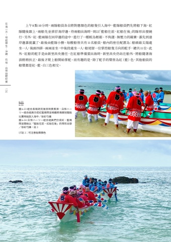 %u4e0a%u53488%u9ede10%u5206%u6642%uff0c%u5169%u968a%u8239%u54e1%u5404%u81ea%u5c07%u5c0d%u61c9%u984f%u8272%u7684%u8239%u96bb%u5f15%u5165%u6d77%u4e2d%uff0c%u85cd%u968a%u8239%u54e1%u5011%u5148%u5c07%u8239%u4e0b%u6d77%uff0c%u7d05%u968a%u96a8%u5f8c%u8ddf%u4e0a%uff0c%u5169%u8239%u5148%u4e26%u6392%u65bc%u6d77%u5cb8%u908a%u3002%u5f85%u5169%u8239%u51fa%u6d77%u6642%uff0c%u5247%u4ee5%u300c%u85cd%u8239%u5728%u524d%uff0c%u7d05%u8239%u5728%u5f8c%u300d%u7684%u968a%u5f62%u51fa%u767c%u7e5e%u884c%u3002%u53e6%u5916%uff0c%u7d05%u3001%u85cd%u5169%u968a%u5728%u56de%u5cb8%u908a%u7684%u9014%u4e2d%uff0c%u9032%u884c%u4e86%u4e00%u7a2e%u8f03%u70ba%u8f15%u9b06%u3001%u4e0d%u62d8%u8b39%u3001%u7121%u58d3%u529b%u7684%u7af6%u8cfd%uff0c%u8ab0%u5148%u5230%u9054%u5cb8%u908a%u8ab0%u5c31%u8d0f%u4e86%uff0c%u6700%u5f8c%u7531%u85cd%u968a%u5c0f%u52dd%u3002%u6bcf%u8258%u8239%u7686%u5171%u670911%u540d%u8239%u54e1%uff0c%u8239%u5167%u7684%u5ea7%u4f4d%u914d%u7f6e%u70ba%uff1a%u8239%u982d%u6700%u5c16%u7aef%u8655%u5750%u4e00%u4eba%uff0c%u5f8c%u9762%u56db%u6392%u3001%u5169%u5169%u4e26%u5750%uff0c%u4e2d%u5f8c%u6bb5%u8655%u5750%u4e00%u4eba%uff0c%u8239%u5c3e%u7559%u4e00%u4f4d%u638c%u63a7%u8239%u96bb%u65b9%u5411%u7684%u8235%u624b%uff0c%u7e3d%u517111%u4f4d%u3002%u6b64%u5916%uff0c%u7d05%u8239%u7684%u8235%u624b%u662f%u7531%u65b0%u91cc%u660c%u592e%u64d4%u4efb%uff0c%u5728%u7d05%u8239%u6e96%u5099%u8981%u51fa%u6d77%u6642%uff0c%u65b0%u91cc%u660c%u592e%u4ecd%u7ad9%u5728%u8239%u5916%uff0c%u5c07%u8239%u96a8%u8457%u6d77%u6d6a%u7a0d%u7a0d%u6276%u6b63%uff0c%u6700%u5f8c%u624d%u722c%u4e0a%u8239%u958b%u59cb%u638c%u8235%u3002%u800c%u6709%u8da3%u7684%u662f%uff0c%u9664%u4e86%u8235%u624b%u7684%u69f3%u7686%u70ba%u7d05%uff08%u85cd%uff09%u8272%uff0c%u5176%u4ed6%u8239%u54e1%u7684%u8239%u69f3%u90fd%u662f%u7d05%u3001%u85cd%u3001%u767d%u4e09%u8272%u76f8%u4ea4%u3002%u5716 6-23 %u7d44%u5408%u9577%u81f4%u8a5e%u5b8c%u5f8c%u56de%u5230%u8cb4%u8cd3%u5e2d%uff0c%u767d%u4fdd%u30cf%u30fc%u30ea%u30fc%u7d44%u5408%u7d44%u54e1%u5206%u6210%u7d05%u85cd%u5169%u968a%u4e26%u76f8%u7e7c%u5c07%u5169%u8258%u5212%u9f8d%u8239%u6bd4%u8cfd%u7528%u8239%u653e%u5165%u6d77%u4e2d%uff0f%u5f90%u5f69%u52fb%u651d%u5716 6-24 %u767d%u4fdd%u30cf%u30fc%u30ea%u30fc%u7d44%u5408%u7d44%u54e1%u5011%u5206%u6210%u7d05%u3001%u85cd%u5169%u968a%u4e26%u958b%u59cb%u4ee5%u300c%u85cd%u8239%u5728%u524d%uff0c%u7d05%u8239%u5728%u5f8c%u300d%u7684%u968a%u5f62%u51fa%u767c%uff0f%u5f90%u5f69%u52fb%u651d%uff0c%u8a3b 26-236-24%u8a3b 2%uff1a%u53ef%u6ce8%u610f%u8239%u69f3%u984f%u8272136%u5728%u6d77%u4e00%u65b9%u3001%u57a3%u8d77%u7de3%u751f%uff1a%u6c96%u7e69%u00b7%u77f3%u57a3%u00b7%u767d%u4fdd%u7530%u91ce%u7d00%u5be6