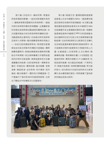 %u7b2c%u516d%u7bc7%u3008%u767d%u8272%u7684%u6c99%u3001%u7e7d %u7d1b%u7684%u69f3%u3001%u61f7%u8457%u5982%u540c%u6d77%u6d6a%u6e67%u8d77%u7684%u6b61%u9a30%uff0c%u4e00%u8d77%u5212%u5411%u90a3%u6e5b%u85cd%u7684%u6d77%u5427 %uff01%uff1a%u8b93%u6885%u96e8%u5b63%u7159%u6d88%u96f2%u6563%u7684%u767d%u4fdd%u6d77%u795e%u796d%u3009%u3002%u901a%u904e%u767d%u4fdd%u6751%u6d77%u795e%u796d%u7684%u5be6%u5730%u53c3%u8207%u9ad4%u9a57%u3001%u4e3b%u8981%u7c4c%u8fa6%u8005%u7684%u6df1%u5ea6%u8a2a%u8ac7%u8207%u796d%u5178%u6d3b%u52d5%u904e%u7a0b%u7684%u89c0%u5bdf%u8a18%u9304%uff0c%u672c%u6587%u8a66%u5716%u6df1%u63cf%u4e26%u5206%u6790%u767d%u4fdd%u6d77%u795e%u796d%u7684%u7c4c%u8fa6%u751f%u614b%u3001%u6d3b%u52d5%u904e%u7a0b%u8207%u4e3b%u8981%u7279%u8272%u3002%u77f3%u57a3%u5cf6%u767d%u4fdd%u7684%u6d77%u795e%u796d%u5728%u6bcf%u5e74%u516d%u6708%u8209%u8fa6%uff0c%u9f8d%u821f%u7af6%u8cfd%u662f%u796d%u5178%u7684%u4eae%u9ede%u4e4b%u4e00%uff0c%u7531%u5404%u793e%u5340%u62db%u52df%u7d44%u968a%u53c3%u52a0%uff0c%u4f7f%u7528%u6b77%u53f2%u611f%u6fc3%u539a%u4e26%u7531%u793e%u5340%u5171%u540c%u88fd%u4f5c%u7684%u50b3%u7d71%u6728%u9020%u9f8d%u8239%uff0c%u5718%u968a%u7af6%u8cfd%u6c1b%u570d%u71b1%u70c8%uff0c%u8c61%u5fb5%u4e26%u6a21%u64ec%u6f01%u6c11%u6355%u9b5a%u6642%u7684%u5718%u7d50%u5408%u4f5c%u8207%u52c7%u6c23%u3002%u5176%u4e3b%u8fa6%u8207%u7c4c%u5099%u5de5%u4f5c%u901a%u5e38%u7531%u7576%u5730%u7684%u767d%u4fdd%u6751%u793e%u5340%u7d44%u7e54%u3001%u6f01%u696d%u5354%u6703%u8207%u5730%u65b9%u5fd7%u9858%u8005%u5718%u9ad4%u5171%u540c%u8ca0%u8cac%u3002%u767d%u4fdd%u6d77%u795e%u796d%u662f%u4e00%u5834%u96c6%u796d%u7940%u5100%u5f0f%u3001%u7948%u798f%u5e87%u4f51%u3001%u8cfd%u968a%u62db%u52df%u3001%u9f8d%u821f%u7af6%u8cfd%u3001%u97f3%u6a02%u6f14%u594f%u3001%u821e%u8e48%u8868%u6f14%u3001%u5168%u6751%u53c3%u8207%u3001%u4e16%u4ee3%u50b3%u627f%u3001%u6d77%u6d0b%u9023%u7d50%u3001%u89c0%u5149%u63a8%u5ee3%u65bc%u4e00%u9ad4%u7684%u5730%u65b9%u7bc0%u6176%u76db%u6703%u3002%u5b83%u4e0d%u50c5%u5c55%u793a%u4e86%u6f01%u6751%u5c0d%u6d77%u6d0b%u7684%u611f%u6069%u8207%u656c%u754f%uff0c%u4e5f%u7a81%u51fa%u4e86%u5718%u7d50%u5408%u4f5c%u548c%u50b3%u7d71%u6587%u5316%u7684%u91cd%u8981%u6027%u3002%u7b2c%u4e03%u7bc7%u3008%u76f8%u6eec%u4ea4%u6d41%uff1a%u81fa%u7063%u6843%u5712%u65b0%u5c4b%u611b%u9109%u5354%u6703%u9047%u4e0a%u65e5%u672c%u6c96%u7e69%u590f%u82b1NPO%u3009%u3002%u901a%u904e%u5be6%u5730%u8e0f%u67e5%u8a2a%u8996%u8207%u5728%u5730%u8cc7%u6599%u7684%u6aa2%u8996%u9a57%u8b49%uff0c%u672c%u6587%u95dc%u6ce8%u81fa%u7063%u6843%u5712%u65b0%u5c4b%u611b%u9109%u5354%u6703%u8207%u65e5%u672c%u6c96%u7e69%u590f%u82b1NPO%u5728%u7d44%u7e54%u904b%u4f5c%u5404%u4e3b%u8981%u5c64%u9762%u7684%u7570%u540c%u6bd4%u8f03%u3002%u6843%u5712%u65b0%u5c4b%u611b%u9109%u5354%u6703%u8207%u6c96%u7e69%u590f%u82b1NPO%u5206%u5225%u662f%u63a8%u52d5%u5404%u81ea%u77f3%u6eec%u7fa4%u6240%u5728%u5730%u65b9%u793e%u5340%u4e4b%u5730%u65b9%u632f%u8208%u767c%u5c55%u7684%u91cd%u9ede%u7d44%u7e54%u3002%u5728%u81ea%u7136%u8cc7%u6e90%u8207%u6587%u5316%u8cc7%u6e90%u7684%u4ea4%u4e92%u8f49%u5316%u4e14%u4e92%u76f8%u52a0%u503c%u91cd%u65b0%u5ee3%u53d7%u91cd%u8996%u7684%u8108%u7d61%u80cc%u666f%u4e2d%uff0c%u5730%u65b9%u7d44%u7e54%u8207%u975e%u71df%u5229%u7d44%u7e54%u662f%u5730%u65b9%u767c%u5c55%u7684%u6838%u5fc3%u529b%u91cf%uff0c%u4e3b%u8981%u901a %u904e%uff1a1. %u751f%u614b%u4fdd%u80b2%uff1b2. %u6587%u5316%u50b3%u627f%uff08%u63a8%u5ee3%u50b3%u7d71%u6280%u85dd%u3001%u6559%u80b2%u50b3%u627f%u8a08%u756b%uff09%uff1b3.%u793e%u5340%u71df%u9020%uff08%u4fc3%u9032%u5c45%u6c11%u53c3%u8207%u3001%u61c9%u5c0d%u5916%u90e8%u58d3%u529b%uff09%uff1b4. %u6c38%u7e8c%u7d93%u6fdf%uff08%u751f%u614b%u65c5%u904a%u7684%u63a8%u5ee3%u3001%u5730%u65b9%u7522%u54c1%u7684%u63a8%u5ee3%uff09%uff1b5. %u8de8%u754c%u5408%u4f5c%uff08%u4e32%u9023%u5916%u90e8%u8cc7%u6e90%u3001%u653f%u7b56%u5f71%u97ff%u8207%u5021%u8b70%uff09%u7b49%u65b9%u9762%u7684%u52aa%u529b%uff0c%u6210%u529f%u5c07%u5730%u65b9%u793e%u5340%u7684%u81ea%u7136%u8207%u6587%u5316%u8cc7%u6e90%u8f49%u5316%u70ba%u6c38%u7e8c%u767c%u5c55%u7684%u57fa%u77f3%uff0c%u540c%u6642%u7dad%u8b77%u4e86%u7576%u5730%u5c45%u6c11%u7684%u798f%u7949%u8207%u8eab%u5206%u8a8d%u540c%u3002012%u5728%u6d77%u4e00%u65b9%u3001%u57a3%u8d77%u7de3%u751f%uff1a%u6c96%u7e69%u00b7%u77f3%u57a3%u00b7%u767d%u4fdd%u7530%u91ce%u7d00%u5be6