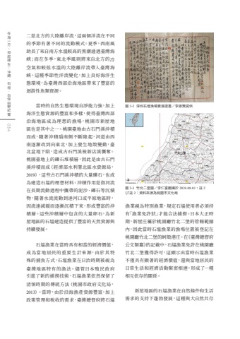 %u4e8c%u662f%u5317%u65b9%u7684%u5927%u9678%u96e2%u5cb8%u6d41%uff0c%u9019%u5169%u500b%u6d0b%u6d41%u5728%u4e0d%u540c%u7684%u5b63%u7bc0%u6709%u8457%u4e0d%u540c%u7684%u6d41%u52d5%u6a21%u5f0f%u3002%u590f%u5b63%uff0c%u897f%u5357%u98a8%u52a9%u9577%u4e86%u4f86%u81ea%u5357%u65b9%u6c34%u6eab%u8f03%u9ad8%u7684%u9ed1%u6f6e%u901a%u904e%u81fa%u7063%u6d77%u5cfd%uff1b%u800c%u5728%u51ac%u5b63%uff0c%u6771%u5317%u5b63%u98a8%u5247%u5c07%u4f86%u81ea%u5317%u65b9%u7684%u51b7%u7a7a%u6c23%u548c%u8f03%u4f4e%u6c34%u6eab%u7684%u5927%u9678%u96e2%u5cb8%u6d41%u5e36%u5165%u81fa%u7063%u6d77%u5cfd%u3002%u9019%u7a2e%u5b63%u7bc0%u6027%u6d0b%u6d41%u8b8a%u5316%uff0c%u52a0%u4e0a%u826f%u597d%u6d77%u6d0b%u751f%u614b%u74b0%u5883%uff0c%u70ba%u81fa%u7063%u897f%u90e8%u6cbf%u6d77%u5730%u5340%u5e36%u4f86%u4e86%u8c50%u5bcc%u7684%u8ff4%u6e38%u6027%u9b5a%u985e%u8cc7%u6e90%u3002%u7576%u6642%u7684%u81ea%u7136%u751f%u614b%u74b0%u5883%u81ea%u6de8%u80fd%u529b%u5f37%uff0c%u52a0%u4e0a%u6d77%u6d0b%u751f%u614b%u8cc7%u6e90%u7684%u8c50%u5bcc%u548c%u591a%u6a23%uff0c%u4f7f%u5f97%u81fa%u7063%u897f%u90e8%u6cbf%u6d77%u5730%u5340%u6210%u70ba%u7406 %u60f3%u7684%u6f01%u5834%uff0c%u6843%u5712%u5e02%u65b0%u5c4b%u5730%u5340%u4e5f%u662f%u5176%u4e2d%u4e4b%u4e00%u3002%u6843%u5712%u81fa%u5730%u7531%u53e4%u77f3%u9580%u6eaa%u6c96%u7a4d%u800c%u6210%uff0c%u96a8%u8457%u6c96%u7a4d%u6247%u5357%u5074%u4e0d%u65b7%u9686%u8d77%uff0c%u6cb3%u9053%u7531%u897f%u5357%u9010%u6f38%u6539%u5230%u5411%u6771%u5317%uff0c%u52a0%u4e0a%u767c%u751f%u5730%u6bbc%u8b8a%u52d5%uff0c%u81fa%u5317%u76c6%u5730%u4e0b%u9677%uff0c%u9020%u6210%u53e4%u77f3%u9580%u6eaa%u88ab%u65b0%u5e97%u6eaa%u8972%u596a%u3002%u6843%u5712%u81fa%u5730%u4e0a%u7684%u792b%u77f3%u5806%u7a4d%u5c64%uff0c%u56e0%u6b64%u662f%u7531%u53e4%u77f3%u9580%u6eaa%u6c96%u7a4d%u800c%u6210%uff08%u7d93%u6fdf%u90e8%u6c34%u5229%u7f72%u5317%u5340%u6c34%u8cc7%u6e90%u5c40%uff0c2019%uff09%uff0c%u9019%u4e9b%u53e4%u77f3%u9580%u6eaa%u6c96%u7a4d%u7684%u5927%u91cf%u792b%u77f3%uff0c%u4e5f%u6210%u70ba%u5efa%u9020%u77f3%u586d%u7684%u7406%u60f3%u6750%u6599%u3002%u6c96%u7a4d%u4f5c%u7528%u662f%u6307%u6cb3%u6d41%u5728%u9577%u671f%u6d41%u52d5%u904e%u7a0b%u4e2d%u651c%u5e36%u7684%u6ce5%u6c99%u3001%u792b%u77f3%u7b49%u6c89%u7a4d%u7269%uff0c%u96a8%u8457%u6c34%u6d41%u6d41%u52d5%u5230%u9054%u6cb3%u53e3%u6216%u5e73%u539f%u5730%u5340%u6642%uff0c%u56e0%u6d41%u901f%u6e1b%u7de9%u800c%u9010%u6f38%u6c89%u7a4d%u4e0b%u4f86%uff0c%u5f62%u6210%u8c50%u5bcc%u7684%u6c96%u7a4d%u5c64%u3002%u9019%u4e9b%u6c96%u7a4d%u5c64%u4e2d%u5305%u542b%u7684%u5927%u91cf%u5375%u77f3%uff0c%u70ba%u65b0%u5c4b%u5730%u5340%u7684%u77f3%u586d%u5efa%u9020%u63d0%u4f9b%u4e86%u8c50%u5bcc%u7684%u5929%u7136%u8cc7%u6e90%u8207%u6301%u7e8c%u767c%u5c55%u3002%u77f3%u586d%u6f01%u696d%u5728%u7576%u6642%u5177%u6709%u76f8%u7576%u7684%u7d93%u6fdf%u50f9%u503c%uff0c%u6210%u70ba%u7576%u5730 %u5c45%u6c11%u7684%u91cd%u8981%u751f%u8a08%u4f86%u6e90%uff0c%u7531%u65bc %u5176%u7279%u6b8a%u7684%u6355%u9b5a%u65b9%u5f0f%uff0c%u77f3%u586d%u6f01%u696d%u5728%u65e5%u6cbb%u6642%u671f%u88ab%u8996%u70ba%u81fa%u7063%u5730%u5340%u7279%u6709%u7684%u6f01%u6cd5%u3002%u5118%u7ba1%u65e5%u672c%u6b96%u6c11%u653f%u5e9c%u5f15%u9032%u4e86%u65b0%u7684%u6355%u6488%u6280%u8853%uff0c%u77f3%u586d%u6f01%u696d%u4f9d%u7136%u4fdd%u7559%u4e86%u6e05%u9818%u6642%u671f%u7684%u50b3%u7d71%u65b9%u6cd5%uff08%u6843%u5712%u5e02%u653f%u5e9c%u6587%u5316%u5c40%uff0c2013%uff09%u3002%u7576%u6642%uff0c%u7531%u65bc%u6cbf%u6d77%u6f01%u7522%u8cc7%u6e90%u8c50%u5bcc%uff0c%u52a0%u4e0a%u653f%u7b56%u7ba1%u7406%u548c%u7a05%u6536%u7684%u9700%u6c42%uff0c%u81fa%u7063%u7e3d%u7763%u5e9c%u5c07%u77f3%u586d%u6f01%u696d%u8996%u70ba%u7279%u5225%u6f01%u696d%uff0c%u898f%u5b9a%u77f3%u586d%u4f7f%u7528%u8005%u5fc5%u9808%u6301%u6709%u300c%u6f01%u696d%u514d%u8a31%u72c0%u300d%u624d%u80fd%u5408%u6cd5%u6355%u6488%u3002%u65e5%u672c%u5927%u6b63%u6642%u671f%uff0c%u65b0%u5c4b%u5e84%u5c6c%u65bc%u6843%u5712%u5ef3%u7af9%u5317%u4e8c%u5821%u7684%u7ba1%u8f44%u7bc4%u570d%u5167%uff0c%u56e0%u6b64%u7576%u6642%u77f3%u586d%u6f01%u696d%u7684%u6f01%u5834%u4f4d%u7f6e%u88ab%u767b%u8a18%u5728%u6843%u5712%u5ef3%u7af9%u5317%u4e8c%u5821%u7684%u86b5%u6bbc%u6e2f%u5e84%u3002%u5728%u300a%u81fa%u7063%u7e3d%u7763%u5e9c%u516c%u6587%u985e%u7e82%u300b%u7684%u8a18%u8f09%u4e2d%uff0c%u77f3%u586d%u6f01%u696d%u514d%u8a31%u5728%u6843%u5712%u5ef3%u7af9%u5317%u4e8c%u5821%u7372%u5f97%u8a31%u53ef%uff0c%u9019%u986f%u793a%u51fa%u7576%u6642%u77f3%u586d%u6f01%u696d%u4e0d%u50c5%u5177%u6709%u986f%u8457%u7684%u7d93%u6fdf%u50f9%u503c%uff0c%u9084%u8207%u7576%u5730%u5c45%u6c11%u7684%u65e5%u5e38%u751f%u6d3b%u548c%u7d93%u6fdf%u6d3b%u52d5%u7dca%u5bc6%u76f8%u9023%uff0c%u5f62%u6210%u4e86%u4e00%u7a2e%u76f8%u4e92%u4f9d%u5b58%u7684%u95dc%u4fc2%u3002%u65b0%u5c4b%u5730%u5340%u7684%u77f3%u586d%u6f01%u696d%u5728%u81ea%u7136%u689d%u4ef6%u548c%u751f%u6d3b%u9700%u6c42%u7684%u652f%u6301%u4e0b%u84ec%u52c3%u767c%u5c55%uff0c%u9019%u7a2e%u8207%u5927%u81ea%u7136%u5171%u5b58%u5716 2-3 %u7af9%u5317%u4e8c%u5821%u5716%uff0f%u674e%u4ec1%u5bcc%u7ffb%u651d%u65bc 2024.08.01%uff0c%u8a3b 2%u5716 2-2 %u6df1%u5733%u77f3%u586d%u6f01%u5834%u8ce3%u6e21%u8b49%u66f8%uff0f%u674e%u632f%u8ce2%u63d0%u4f9b%u8a3b 2%uff1a%u8cc7%u6599%u4f86%u6e90%u70ba%u6843%u5712%u5e02%u6587%u5316%u5c40034%u5728%u6d77%u4e00%u65b9%u3001%u57a3%u8d77%u7de3%u751f%uff1a%u6c96%u7e69%u00b7%u77f3%u57a3%u00b7%u767d%u4fdd%u7530%u91ce%u7d00%u5be6%u7b2c%u4e00%u4e5d%u4e94%u865f %u8a31%u7aef %u86b5%u6bbc%u6e2f%u5e84%u4e8c%u4e8c%u516b %u756a%u5730 %u86b5%u6bbc%u6e2f%u5e84 %u5730%u5148 %u5927%u6b63%u56db%u5e74 %u9c59%u4ed4%u3001%u8d64%u7fc5%u3001%u8766%u3001%u5176%u4ed6%u96dc%u9b5a%u7b2c%u4e00%u4e5d%u516d%u865f %u8a31%u798e%u7965 %u86b5%u6bbc%u6e2f%u5e84%u4e8c%u4e03%u516b %u756a%u5730 %u86b5%u6bbc%u6e2f%u5e84 %u5730%u5148 %u5927%u6b63%u56db%u5e74 %u9c59%u4ed4%u3001%u8d64%u7fc5%u3001%u8766%u3001%u5176%u4ed6%u96dc%u9b5a%u7b2c%u4e00%u4e5d%u4e03%u865f %u694a%u5168 %u5f8c%u6e56%u5e84%u4e09%u4e5d %u756a%u5730 %u86b5%u6bbc%u6e2f%u5e84 %u5730%u5148 %u5927%u6b63%u56db%u5e74 %u9c59%u4ed4%u3001%u8d64%u7fc5%u3001%u8766%u3001%u5176%u4ed6%u96dc%u9b5a