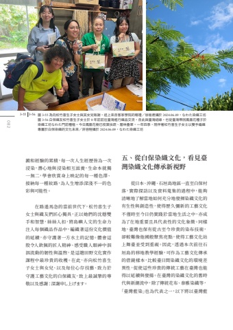 %u5716 3-55 %u70ba%u5411%u677e%u7af9%u559c%u751f%u5b50%u5973%u58eb%u8207%u5176%u5973%u5152%u81f4%u8b1d%uff0c%u9001%u4e0a%u4f86%u81ea%u5ba2%u5bb6%u5b78%u9662%u7684%u8d08%u79ae%uff0f%u5f90%u745c%u541b%u651d%u65bc 2024.06.09%uff0c%u306a%u308f%u305f%u67d3%u7e54%u5de5%u574a%u5716 3-56 %u767d%u4fdd%u7e54%u53cb%u677e%u7af9%u559c%u751f%u5b50%u5973%u58eb%u65bc 8 %u5e74%u524d%u524d%u5f80%u81fa%u7063%u9032%u884c%u7e54%u54c1%u4ea4%u6d41%uff0c%u81ea%u6b64%u8207%u81fa%u7063%u7d50%u7de3%uff0c%u4e5f%u5f9e%u81fa%u7063%u5e36%u56de%u9cf3%u51f0%u82b1%u7a2e%u5b50%u65bc%u67d3%u7e54%u5de5%u574a%u306a%u308f%u305f%u9580%u524d%u7a2e%u690d%u3002%u4eca%u65e5%u9cf3%u51f0%u82b1%u6a39%u5df2%u679d%u8449%u6276%u758f%u3001%u5c64%u6797%u53e0%u7fe0%uff0c%u4e00%u5e74%u56db%u5b63%uff0c%u966a%u4f34%u8457%u677e%u7af9%u559c%u751f%u5b50%u5973%u58eb%u4ee5%u96d9%u624b%u7de8%u7e54%u5c08%u5c6c%u65bc%u767d%u4fdd%u67d3%u7e54%u7684%u6587%u5316%u672a%u4f86%uff0f%u8a31%u5bb9%u6995%u651d%u65bc 2024.06.09%uff0c%u306a%u308f%u305f%u67d3%u7e54%u5de5%u574a3-55 3-56%u4e94%u3001%u5f9e%u767d%u4fdd%u67d3%u7e54%u6587%u5316%uff0c%u770b%u898b%u81fa%u7063%u67d3%u7e54%u6587%u5316%u50b3%u627f%u65b0%u8996%u91ce%u6fb1%u548c%u7d93%u9a57%u7684%u7d2f%u7a4d%uff0c%u6bcf%u4e00%u6b21%u4eba%u751f%u7d93%u6b77%u7686%u70ba%u4e00%u6b21%u6d78%u67d3%uff0c%u6f5b%u5fc3%u5730%u8207%u6d78%u67d3%u76f8%u4e92%u6ecb%u990a%uff0c%u751f%u547d%u672c%u5c31%u7368%u4e00%u7121%u4e8c%uff0c%u5b78%u6703%u6b23%u8cde%u8eab%u4e0a%u6620%u8a18%u7684%u6bcf%u4e00%u7a2e%u8272%u6fa4%u3001%u63a5%u7d0d%u6bcf%u4e00%u7a2e%u7d0b%u8def%uff0c%u70ba%u4eba%u751f%u589e%u6dfb%u6df1%u6dfa%u4e0d%u4e00%u7684%u8272%u5f69%u8207%u53ef%u80fd%u6027%u3002%u5728%u8def%u9059%u99ac%u6025%u7684%u7576%u524d%u4e16%u4ee3%u4e0b%uff0c%u677e%u7af9%u559c%u751f%u5b50%u5973%u58eb%u8207%u7e54%u53cb%u5011%u5320%u5fc3%u7368%u5177%uff0c%u6b63%u4ee5%u5979%u5011%u7684%u6c88%u7a69%u96d9%u624b%u548c%u667a%u6167%uff0c%u7d72%u7d72%u5165%u6263%uff0c%u5c07%u5cf6%u5dbc%u4eba%u6587%u7684%u751f%u547d%u529b%u6ce8%u5165%u6bcf%u500b%u7e54%u54c1%u4f5c%u54c1%u4e2d%uff0c%u7de8%u7e54%u8457%u9019%u4efd%u6587%u5316%u50f9%u503c%u7684%u5ef6%u7e8c%uff0c%u4ea6%u5b88%u8b77%u8457%u4e00%u65b9%u6c34%u571f%u7684%u8a18%u61b6%u3002%u9ad4%u6703%u9019%u80a1%u4ee4%u4eba%u6b3d%u4f69%u7684%u5320%u4eba%u7cbe%u795e%u3001%u611f%u53d7%u8077%u4eba%u773c%u795e%u4e2d%u6cc5%u6cc5%u6d41%u52d5%u7684%u97cc%u6027%u8207%u6eab%u7166%uff0c%u662f%u9019%u8d9f%u7530%u91ce%u6587%u5316%u5be6%u4f5c%u8ab2%u7a0b%u4e2d%u6700%u73cd%u8cb4%u7684%u6536%u7a6b%u3002%u5728%u6b64%uff0c%u4ea6%u5411%u677e%u7af9%u559c%u751f%u5b50%u5973%u58eb%u8207%u5973%u5152%u3001%u4ee5%u53ca%u6bcf%u4f4d%u5fc3%u5b58%u6280%u85dd%u3001%u81f4%u529b%u65bc%u5b88%u8b77%u5de5%u85dd%u6587%u5316%u7684%u767d%u4fdd%u7e54%u53cb%uff0c%u81f4%u4e0a%u6700%u8aa0%u646f%u7684%u5c0a%u656c%u4ee5%u53ca%u611f%u8b1d%uff1a%u6df1%u8b1d%u7533%u3057%u4e0a%u3052%u307e%u3059%u3002%u5f9e%u65e5%u672c%u3001%u6c96%u7e69%u3001%u77f3%u57a3%u5cf6%u5730%u5340%u4e00%u76f4%u81f3%u767d%u4fdd%u6751%u843d%uff0c%u5be6%u969b%u63a2%u8a2a%u4ee5%u53ca%u8cc7%u6599%u8490%u96c6%u7684%u904e%u7a0b%u4e2d%uff0c%u80fd%u5920%u6e05%u6670%u5730%u4e86%u89e3%u7576%u5730%u5982%u4f55%u5145%u5206%u5730%u767c%u63ee%u67d3%u7e54%u6587%u5316%u7684%u6709%u751f%u6027%u8207%u5275%u9020%u6027%uff0c%u4f7f%u5f97%u6b77%u4e45%u5f4c%u65b0%u7684%u5de5%u85dd%u6587%u5316%u4e0d%u50c5%u6642%u81f3%u4eca%u65e5%u4ecd%u5be6%u8e10%u65bc%u7576%u5730%u751f%u6d3b%u4e4b%u4e2d%uff0c%u4ea6%u6210%u70ba%u4e86%u5728%u5730%u91cd%u8981%u4e14%u5177%u4ee3%u8868%u6027%u7684%u6587%u5316%u8c61%u5fb5%u3002%u540c%u6a23%u5730%uff0c%u81fa%u7063%u4e5f%u4fdd%u6709%u5f9e%u53e4%u81f3%u4eca%u73cd%u8cb4%u7684%u67d3%u5e03%u6280%u8853%uff0c%u537b%u8f03%u96e3%u50cf%u4ed6%u570b%u822c%u805a%u7126%u4eae%u9ede%uff0c%u4f7f%u5f97%u5de5%u85dd%u6587%u5316%u7ad9%u4e0a%u821e%u81fa%u4e26%u53d7%u5230%u91cd%u8996%u3002%u56e0%u6b64%uff0c%u900f%u904e%u672c%u6b21%u524d%u5f80%u77f3%u57a3%u5cf6%u7684%u79fb%u5730%u6559%u5b78%u7d93%u9a57%uff0c%u53ef%u4f5c%u70ba%u5de5%u85dd%u6587%u5316%u50b3%u627f%u7684%u501f%u93e1%u6a23%u672c%uff0c%u6bd4%u8f03%u81fa%u65e5%u9593%u67d3%u7e54%u6587%u5316%u7684%u74b0%u5883%u5dee%u7570%u6027%uff0c%u4fc3%u4f7f%u9019%u4e9b%u73cd%u8cb4%u7684%u50b3%u7d71%u5de5%u85dd%u5728%u81fa%u7063%u4e5f%u80fd%u5f97%u4ee5%u5ef6%u7e8c%u8207%u767c%u63da%u3002%u5728%u81fa%u7063%u7684%u67d3%u7e54%u6587%u5316%u7684%u820a%u6642%u4ee3%u8207%u65b0%u6f6e%u6d41%u4e2d%uff0c%u9664%u4e86%u50b3%u7d71%u82b1%u5e03%u3001%u6cf0%u96c5%u67d3%u7e54%u7b49%uff0c%u300c%u81fa%u7063%u85cd%u67d3%u300d%u4e5f%u70ba%u4ee3%u8868%u4e4b%u4e00%uff0c%u4ee5%u4e0b%u5c07%u4ee5%u81fa%u7063%u85cd082