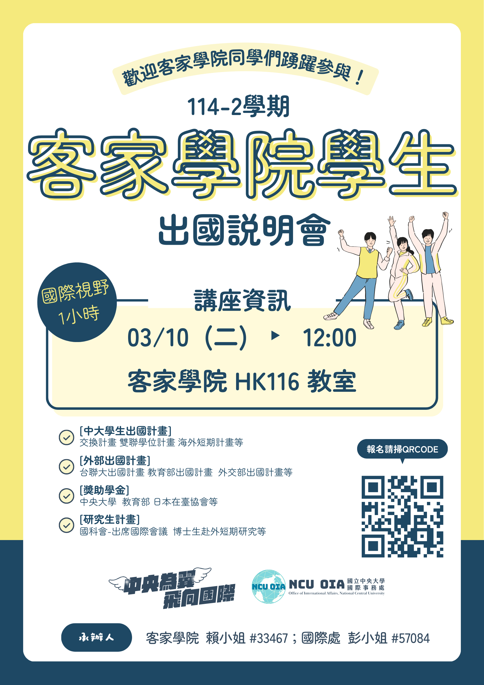 【歡迎報名參加】114-2學期客家學院學生出國說明會(3月10日中午12時)