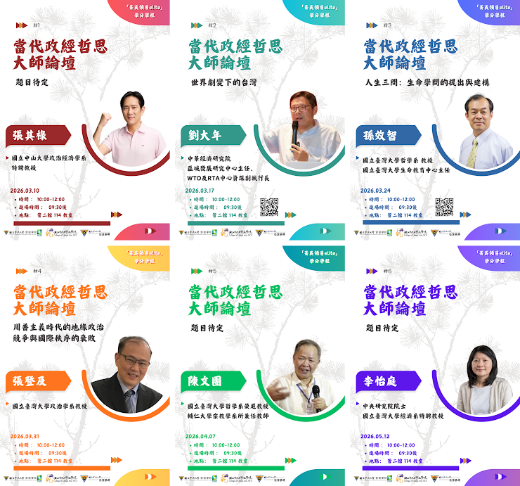 【歡迎報名】114-2 學期「菁英領導 Elite 學分學程—當代政經哲思大師論壇」活動資訊